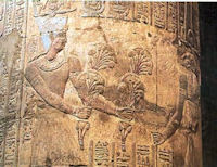 La característica más significativa de la decoración es la serie de textos escritos en sus columnas. Proporcionan una descripción abundante y detallada de las fiestas del año sagrado de Esna, presentado en la forma esquemática de un calendario y grabado también en una columna. Hay, además, una excelente pareja de himnos criptográficos a Jnum, uno escrito casi exclusivamente con jeroglíficos de carneros, y el otro escrito con cocodrilos.