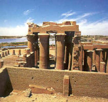 Kom Ombo se alza sobre un promontorio en una curva del Nilo, en el extremo septentrional de la zona más ancha de tierra de cultivo, que se encuentra al sur de Gebel el-Silsila. Debido a las mejoras técnicas de la agricultura, fue una ciudad floreciente en el Período del ptolemaico, al que se remontan casi todos sus monumentos. Sin embargo, parece que en la muralla meridional del recinto descubrió Champollion una puerta perteneciente a la XVIII dinastía, y también se han encontrado bloques dispersos del Imperio Nuevo. Parte del atrio del vestíbulo al templo ha sido erosionado por el río, mientras que al que queda detrás del recinto está poco estudiada, de modo que otros testimonios primitivos han desaparecido o yacen enterrados.