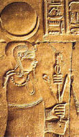 Una figura de Haroeris en la primera sala hipóstila revive una vieja técnica de embellecimiento del relieve: tiene un hueco en lugar del ojo que debía de incrustarse, confiriendo una especial opulencia y vivacidad a la figura del dios.