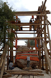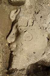 En los trabajos de limpieza y cartografía efectuados en la parte central del gran atrio del templo, donde hay partes del pavimento original, se han encontrado otros restos como la cabeza de una deidad, de 28,5 centímetros, que representa a un dios masculino, y una estela de cuarcita roja que ha sido reconstruida a partir de 27 grandes piezas hasta alcanzar 7,40 metros sobre los nueve de la obra original. Su restauración se completará la próxima temporada, según los responsables de la misión.