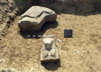 Se trata de una de las dos estatuas colocadas en la entrada norte del templo, que probablemente fueron destruidas por el terremoto del año 27 antes de Cristo, según el comunicado.